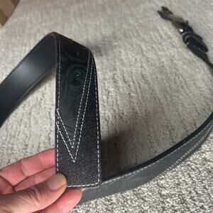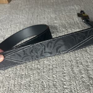 Cute belt! New with tag. Has a Jean material and a vegan embossed leather with roses. Silver tone hardware