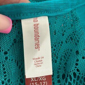 No Boundaries Womens Butterfly Lace Racerback Tank Top XL/XG 15-17 Teal Color