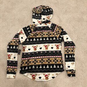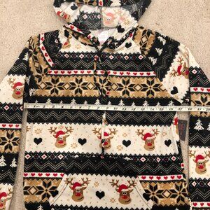 No Boundaries Women's Christmas Reindeer Plush Pullover Hoodie