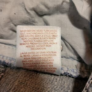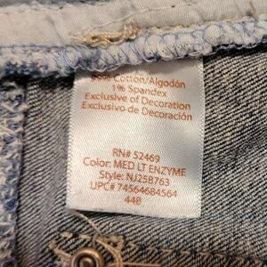 Vintage-inspired No Boundaries denim cutoff shorts, women’s size small. Blue stonewashed denim with rhinestone anchor embroidery on back pockets, distressed details, and raw hem cut-off design. Features contrast white stitching, sustainable cotton blend with stretch, and low-rise fit with 2" inseam. A bold glam-meets-baddie piece perfect for summer nights, concerts, or festival styling. Pre-owned in excellent condition, no major flaws.