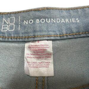 These No Boundaries high-rise denim shorts are designed for comfort and style. Featuring a light wash and distressed detailing, they add a casual, trendy touch to any outfit. The 3-inch inseam provides a flattering fit, while the blend of recycled polyester and cotton ensures durability and softness.
