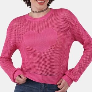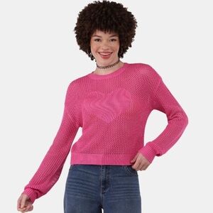No Boundaries Women’s Hot Pink Lightweight Heart Mesh Pullover