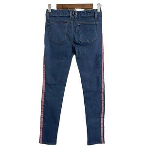 No Boundaries Womens Juniors Dark Stretch Red Plaid Side Stripe Skinny Jeans 7. NOTE: some puckering, see photos. Measurements Waist: 28" Inseam: 28" Rise: 8" Offers always welcome! Measurements are approximations taken while hanging