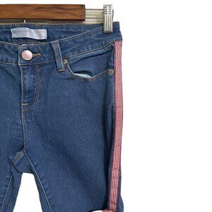 No Boundaries Womens Juniors Dark Stretch Red Plaid Side Stripe Skinny Jeans 7