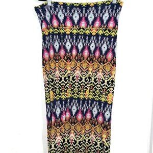 No Boundaries Womens Maxi Skirt L/G Multicolor Aztec Print Stretchy Fabric