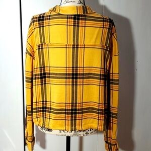 No Boundaries- Womens Oversized Cropped Yellow Plaid Top Sz.XXL