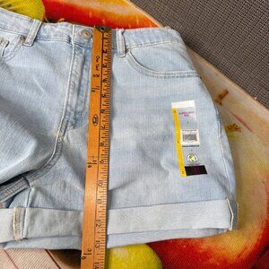 No Boundaries Womens Size 11 Blue High Rise Denim Cuffed Shorts Light Wash