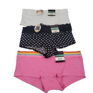 No Boundaries Women's Size Small Cotton & Lace Trim 3-Pack Boy Short Panties