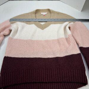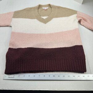 No Boundaries Women's Sz Med 7-9 Sweater V-Neck Striped Multicolor Knit Preowned