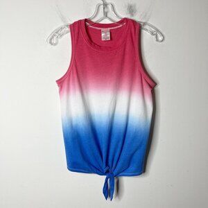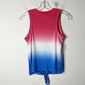 No Boundaries Women's Tie Front Tank Top Size S Red White & Blue Color Block Sleeveless