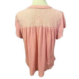 No Boundaries Women's Lace Top Short Sleeve Blouse Casual Shirt Rose Pink Size X