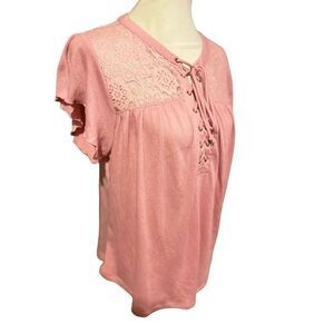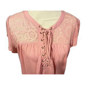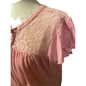 No Boundaries Women's Lace Top Short Sleeve Blouse Casual Shirt Rose Pink Size XXL 19-NWOT