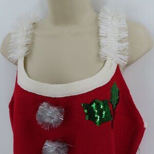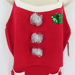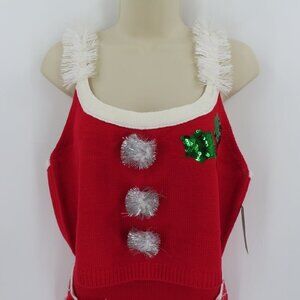 No Boundaries XL Juniors Mrs Claus Christmas Crop Top Skirt Set Knit Fringe NEW