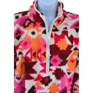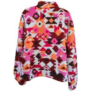 No Boundaries XL Womens Fleece Pullover Aztec Geometric Print Pink Orange Brown