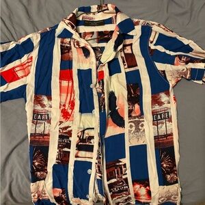 No Boundaries XS (30-32) Top Multicolor Graphic Print Casual Button Up Collared