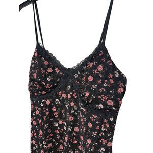 No Boundaries Y2K Babydoll Dark Floral Sheer Overlay Dress Built in Bra Size L