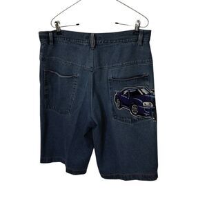 No Boundaries Y2K Blue Jean Long Shorts Hip Hop Swag Size 36 Length is 23" Rise is 11" Amazing graphics and Embroidery on this bad boy!See pics for any blemish.