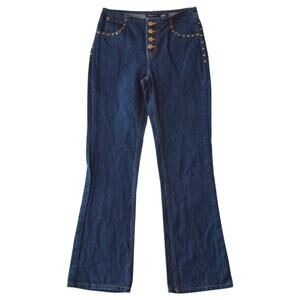 No Boundaries Y2K High Waist Flare Jeans Size XS Gold Button Fly