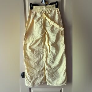 No Boundaries Nylon Parachute Pants, Women's Stylish yellow cargo pants with multiple pockets. Perfect for casual wear.