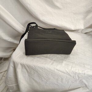 This listing is for a brand new with tags bag, it says "No Boundaries" on the tag it is black and approximately measures 9.5 inches x 8 inches x 3.5 inches. It has a detachable "cellphone holder" (5" x 2.5" x 1"), inside it has a main compartment and a small zippered pocket, with two handles and a snap close. This would be a really handy purse that will go with any outfit.