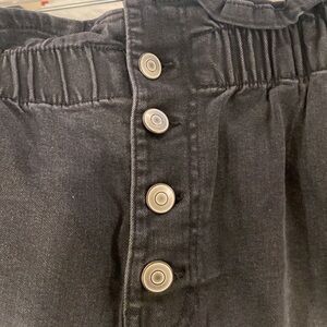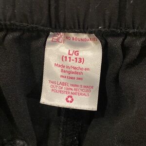 Button fly high elastic waist with side pockets and rear patch pockets. Shorts have belt loops. Waist to cuff is 15”. Size L. 11-13