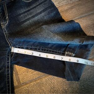 This is a pair of blue denim shorts by No Boundaries. Stretch denim. Longer shorts. Bermuda length. Cuffed legs. Size 11. Excellent Condition. Please see photos for more details and measurements.