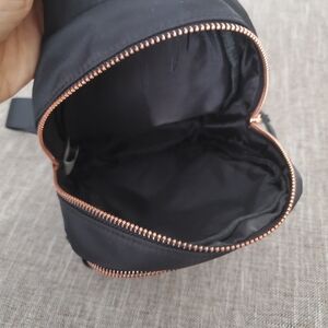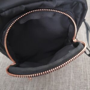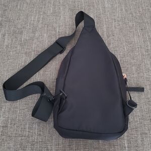 No Boundaries sling pack, 100% polyester (has a nylon feel to it).