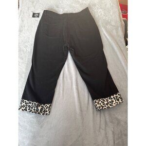 No Boundaries womens size 15 Juniors Black Capri Pants With Leopard Print Cuff