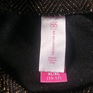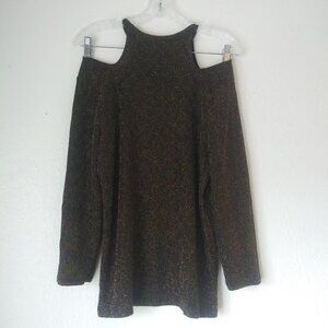No Boundaries women's size XL black and gold cold shoulder metallic blouse