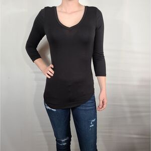 No Boundaries Black Mid Sleeve V-Neck Blouse