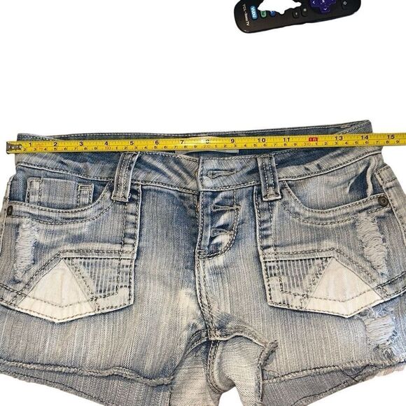 No Boundaries Blue Faded Denim Flat Front High-Rise Cut-Off Shorts Ladies Size 3