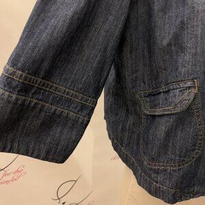 No Boundaries. Junior size 11/13. Cotton Lightweight Denim Prissy Jacket or Shirt. Pockets. Center back 19". 3/4 Sleeve 16". Bust 40". Excellent pre-loved condition. No spots, tears or damage.