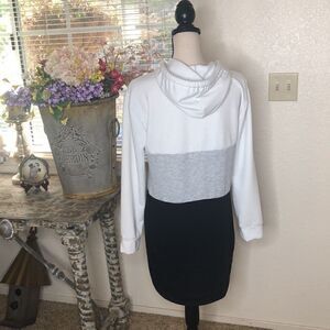 No Boundaries White, Black and Gray Color Block Hooded Sweatshirt