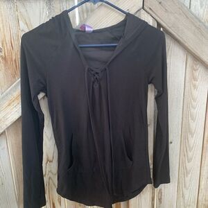 No Boundaries top hooded front pocket lace up thin. Size is XS. Measurements are done flat and are approximate.