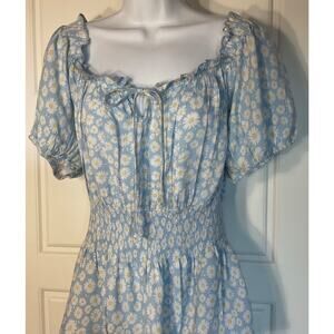No Boundries Blue Daisy On/Off Shoulder Ruched Waist Short Sleeve Top Plus 2XL