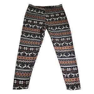 No Boundries NOBO Lounge Pants Woman's XL (15-17) Brown Fair Isle Fleece Snuggle