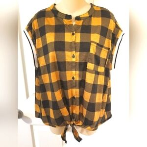 Super cute No Boundries Top in buffalo check print with orange and black colors, tie on front, perfect pair with jeans or leggings, washes well, lightweight fabric, size XL.
