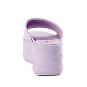 These are brand new with tags No Boundries Women's "Flatform" Platform Slide-On Padded Sandals - Lavender. These adorable trendy sandals feature a soft pastel lavender color, vegan leather, padded wide single band with elastic for a comfy fit, memory foam insoles, and a padded tubular quilted / embossed texture platform. These super cute 90's inspired sandals can be dressed up, or down!