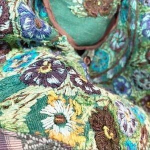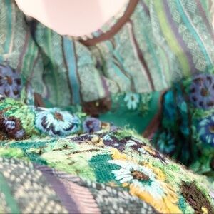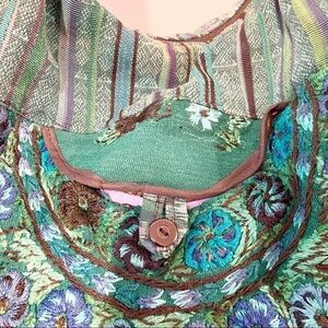Great preowned condition. Several fraying strings and threading on embroidered section. Has a small pocket in the front secured with a button. Very, very clean. No holes or stains. Strap has some padding inside. Very cool boho style bag.