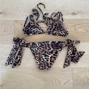 No Brand - Leopard Print Mesh Cut Out Bikini Top & Bottoms in Brown & Black