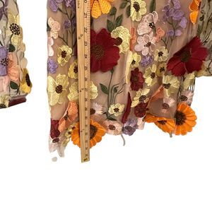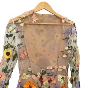 No Brand Short Floral Garden Embroidered Sheer Backless Dress Polyester Size M