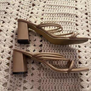 No Brand Tan Colored Strappy 3 1/4" Block Heel Sandals Size 39 - 8.5