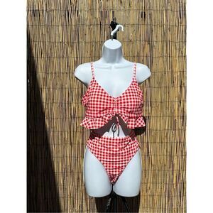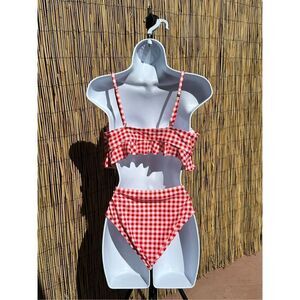 No Brand Red White Ruffle Bikini Plaid Size XL