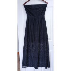 Black Lace Strapless Maxi Dress