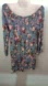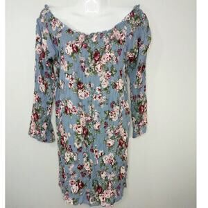 No Comment Blue Floral Mini Dress Smocked Shoulder Bell Sleeve Size L