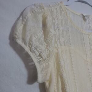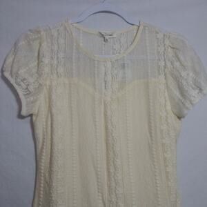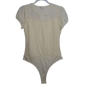 No Comment Cream Lace Bodysuit Short Sleeve Cottage Fairy Boho Size L