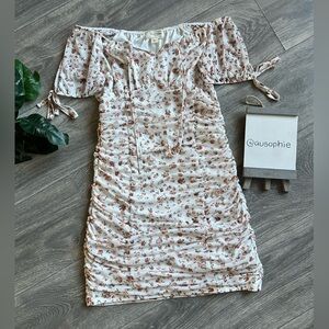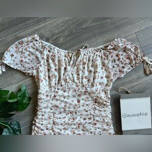 No Comment Emma Mesh Keyhole Tie Front Ruched Floral Milkmaid Mini Dress. Size M