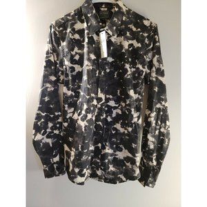 This is a Juniors baby blue blouse in size S with long sleeves made of sheer lace fabric. It is designed with a regular fit and a basic style. The material is a combination of nylon and spandex, giving it a sheer appearance. The brand is labeled as "No Comment."