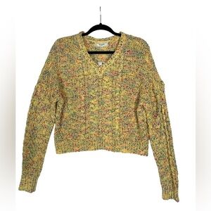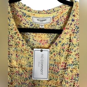 No Comment LA/NY Knitted Sweater Women’s Size Multicolored V Neck Cropped- NWT