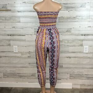 No Comment NY LA Strapless Jumpsuit Smocked Boho Ruche Ankle Size Women’s Large